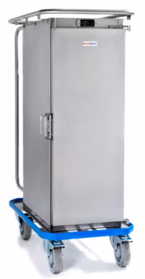 Mattransportvagn i enkelutförande. Neutralt skåp med 14 gejdrar.