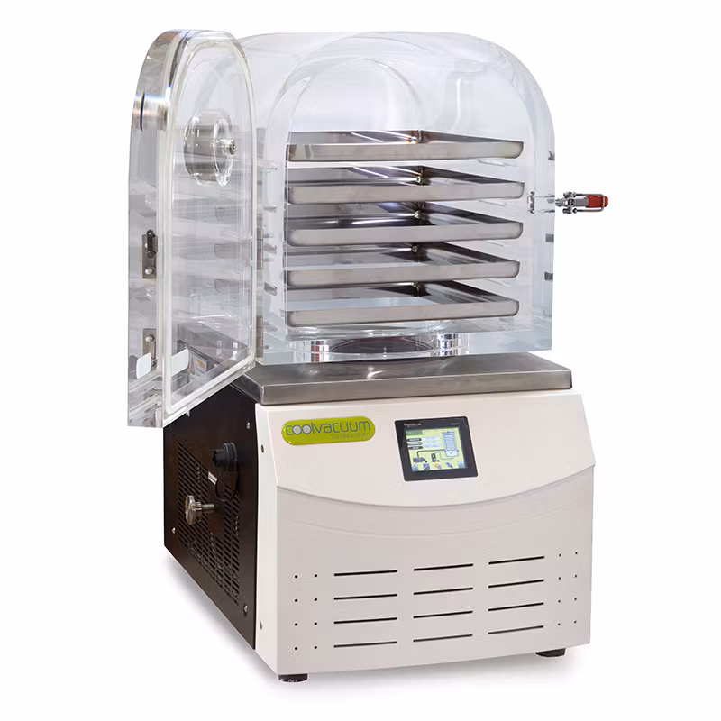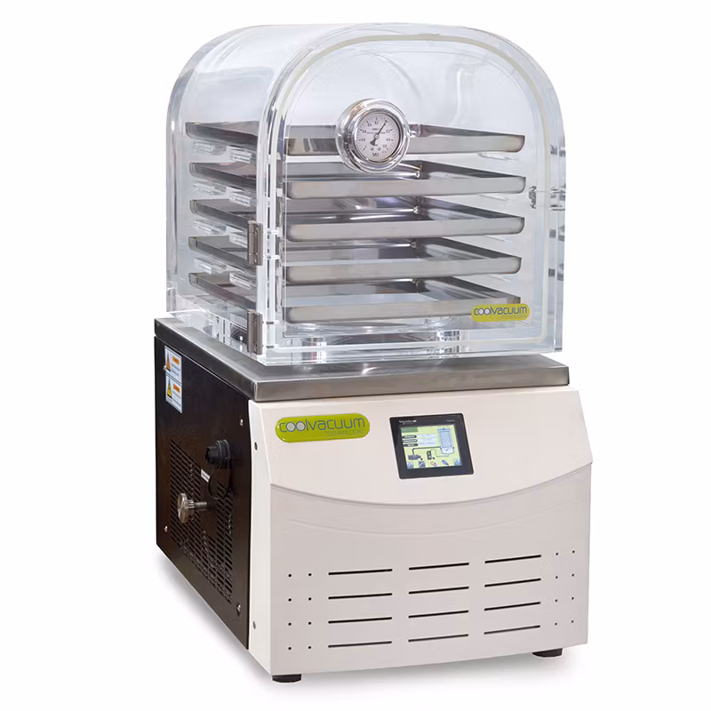 En liten och smidig frystork för livsmedel. Resterande produkter från Coolvacuum är till för laboratorier! Det går inte att använda en laboratorie frystork för livsmedel eller vise versa.