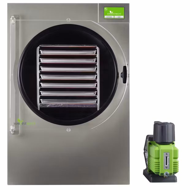 Harvest Right XL Pro är en Stor frystork med plats för 7 st stora brickor med en produktion av ca 12 kg per batch. Detta medföljer, Vakuumpump chinatillverkad (går att uppdatera till exmpelvis Busch-pump), Olja till vakuumpumpen, oljefilter, 7 stycken brickor till frystorken, Manual (på engelska). Vi skickar även med lite förseglingsbara påsar  samt 50st syre absorbenter.