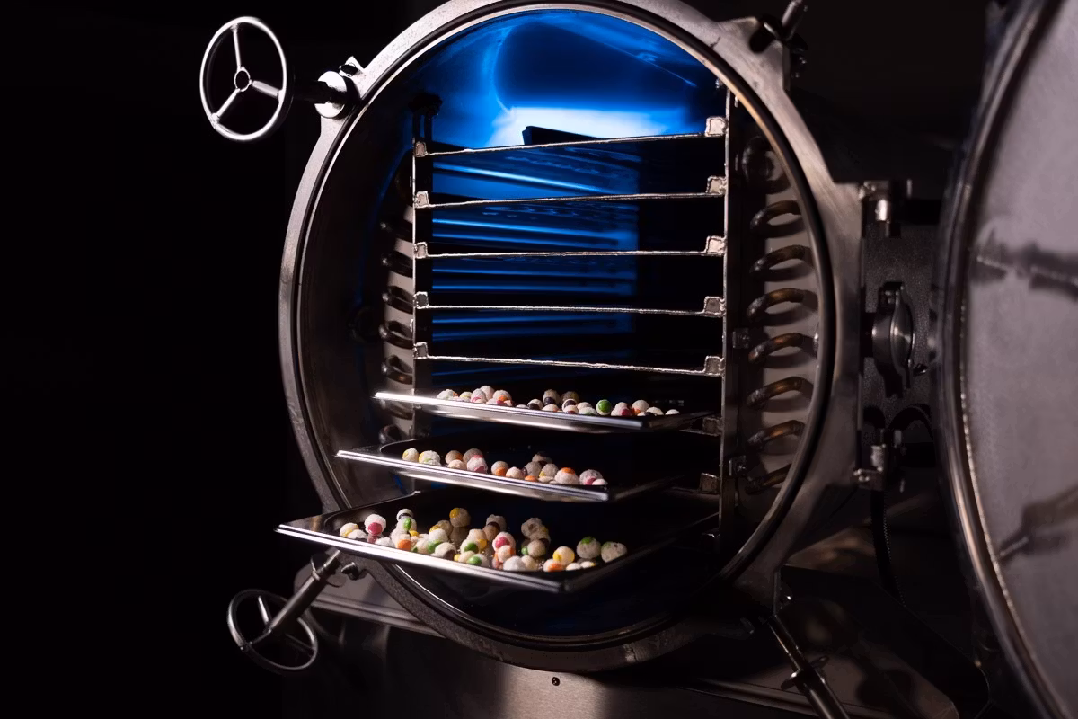 Kapacitet: upp till 45L/batch beroende på vad som frystorkas.