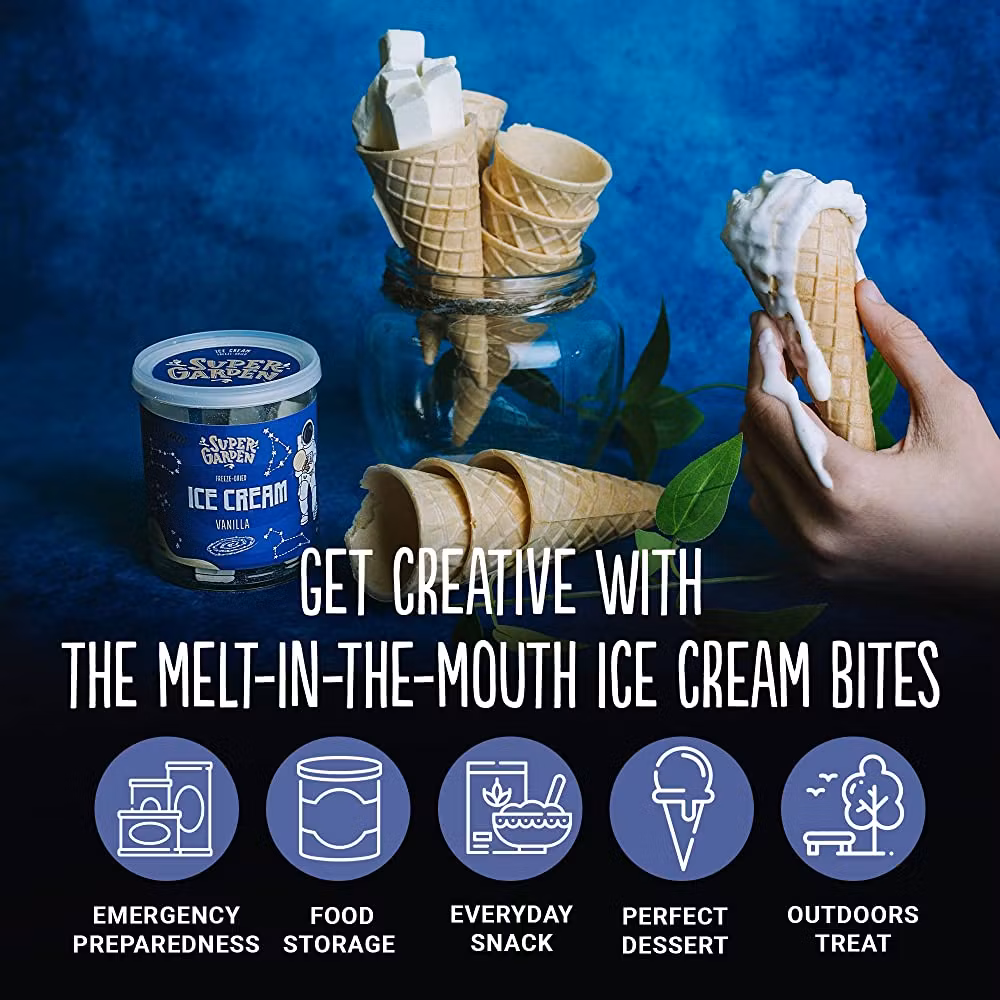 Om du inte orkar tillverka den själv i våra frystorkar från Harvest Right så kan du köpa frystorkad glass färdig på burk.