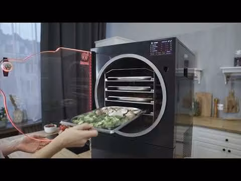 Leosmaks stora frystork för lyophilization med en enorm volym jämfört med konkurenterna och allt annat på marknaden. Denna maskin har 8 hyllplan (passar en stor restaurang ugn) för GN1/1 bleck, LEO-010L.