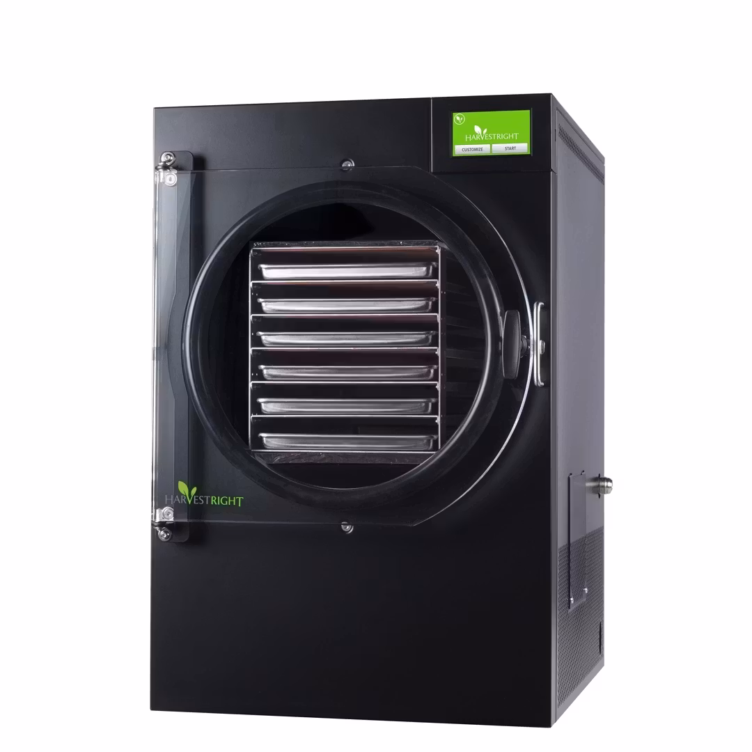 Harvest Right Large Home Pro är en Stor frystork med plats för 6 st stora brickor med en produktion av ca 11 kg per batch. Detta medföljer, Vakuumpump chinatillverkad (går att uppdatera till exmpelvis Busch-pump), Olja till vakuumpumpen, oljefilter, 6 stycken large brickor till frystorken, Manual (på engelska). Vi skickar även med lite förseglingsbara påsar samt lite syre absorbenter mm