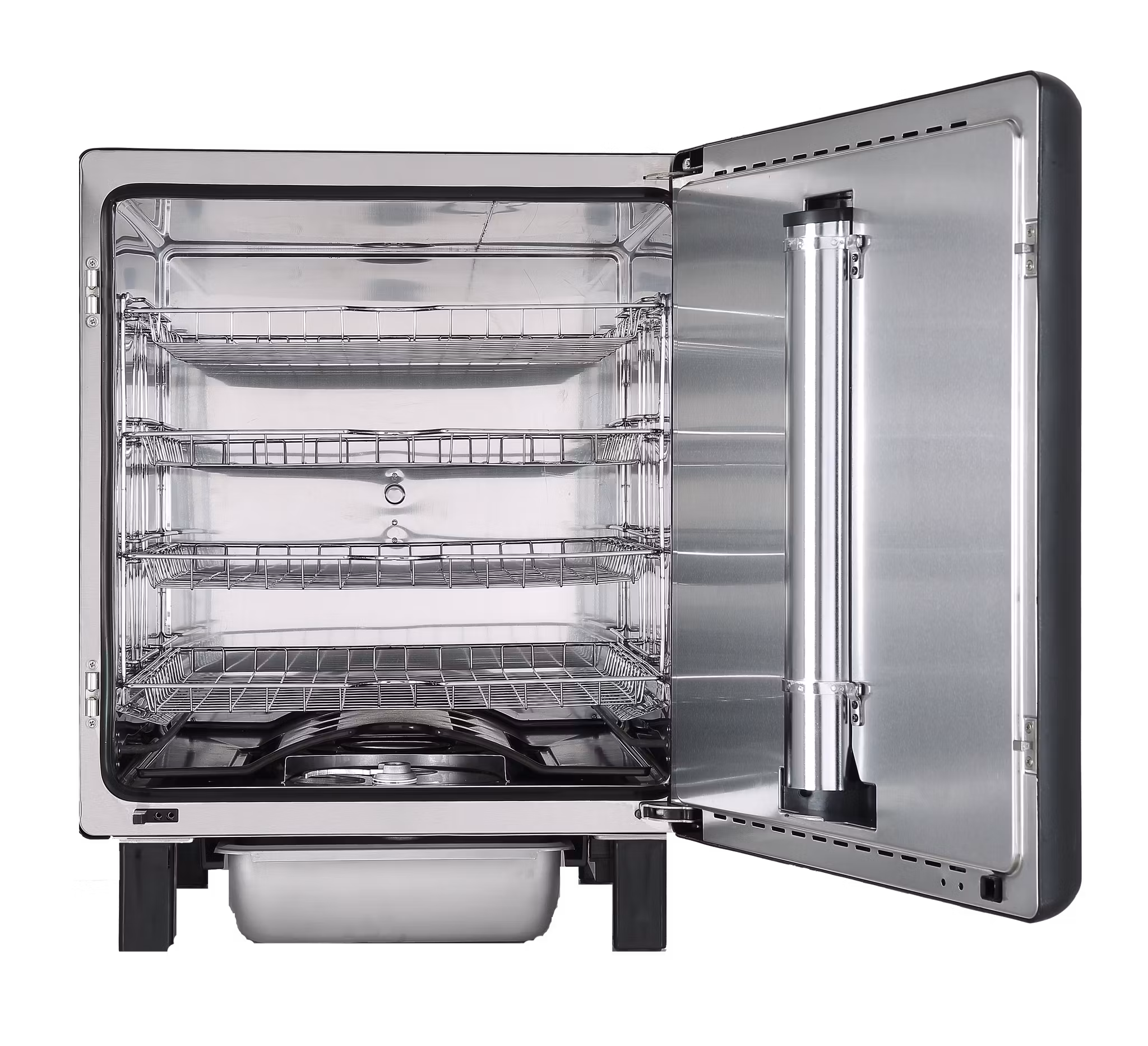 Vårt eleganta 1200 watts rökskåp stoltserar med att ta oss med till rökningens paradis.