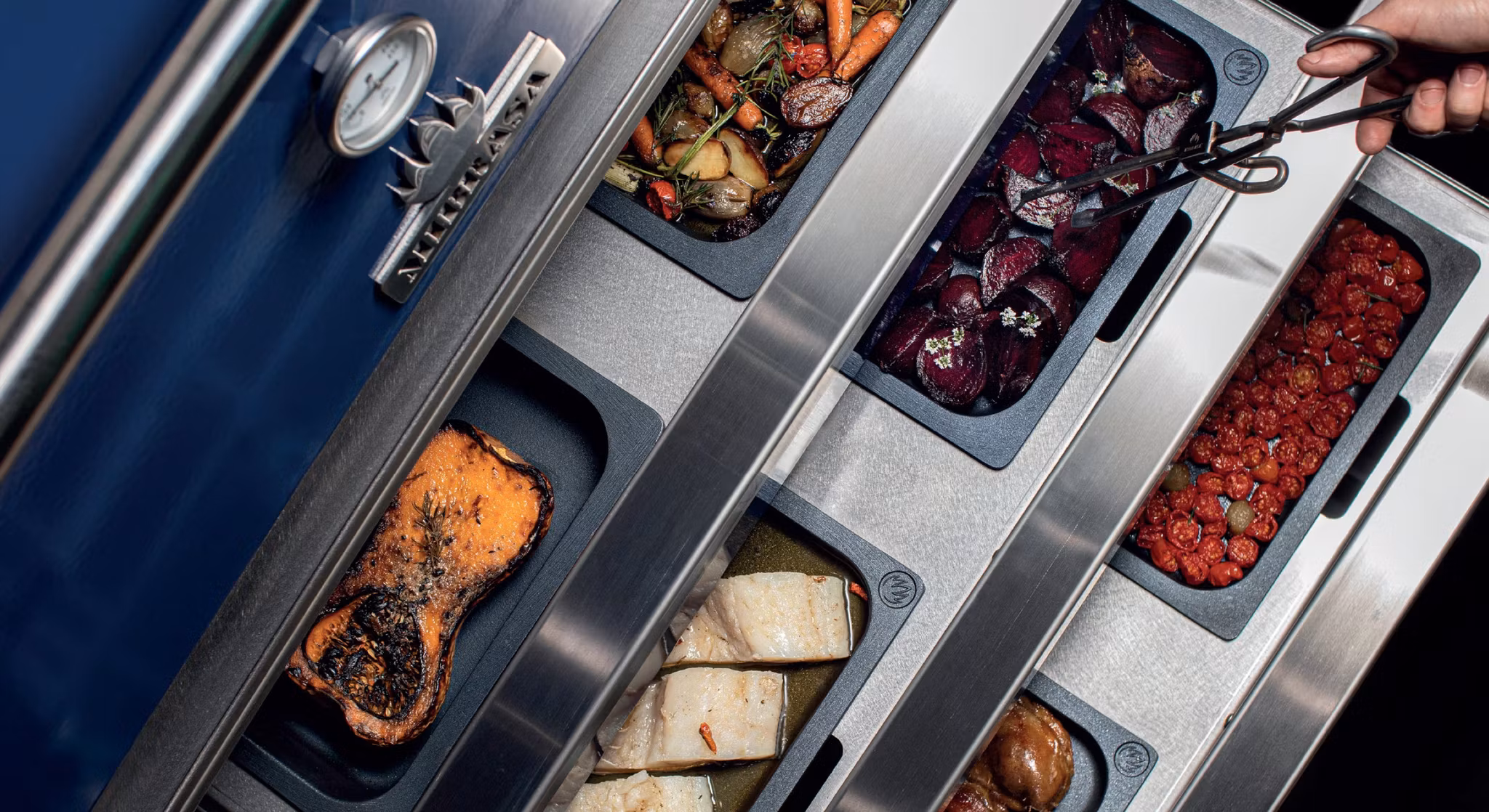 Modell HOT är en ugn ned lådor som håller upp till 95°C för slow cooking tillsammans med grillen (300°C).